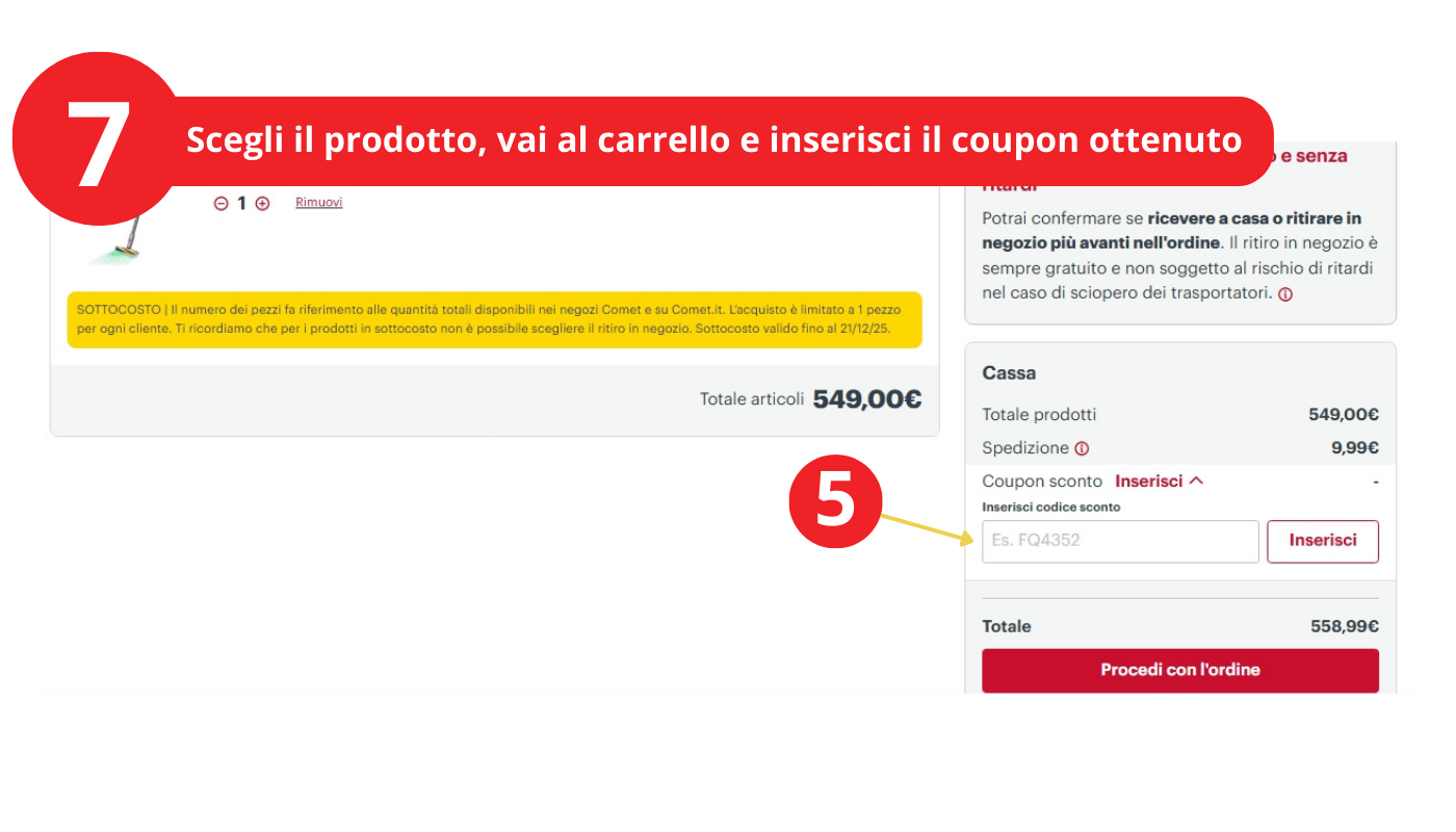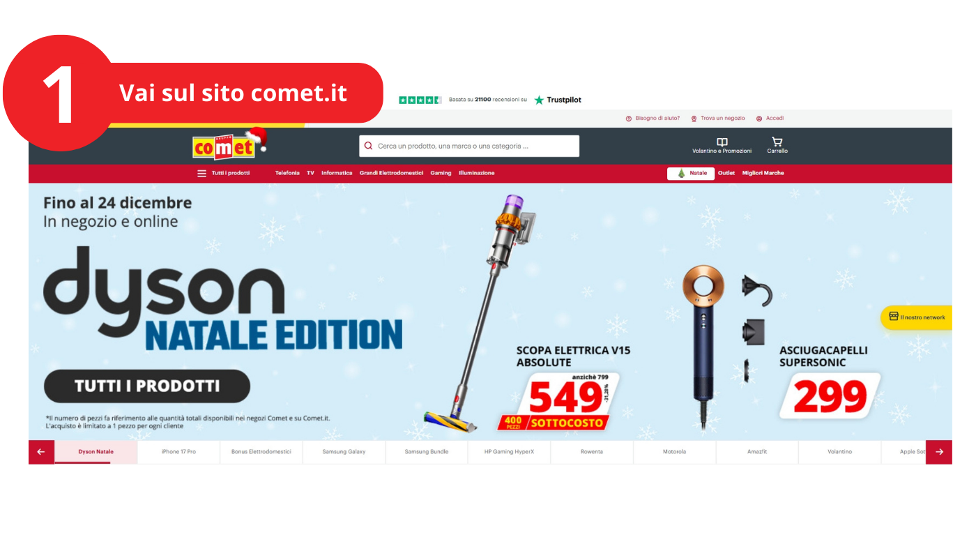 Una volta ricevuti, puoi utilizzare i Buoni Shopping nei negozi Comet oppure sul nostro sito online.
