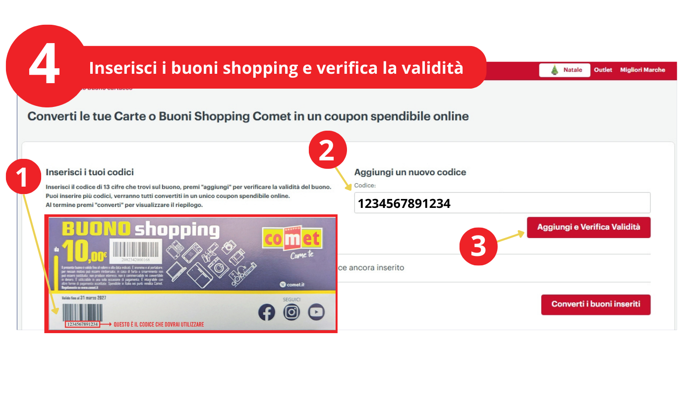 Trasforma i tuoi buoni shopping in coupon digitali da inserire nel carrello prima di completare l’ordine.