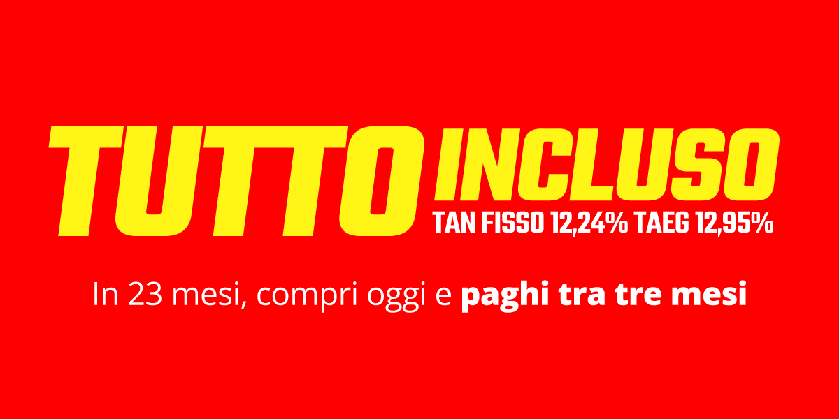 TUTTO INCLUSO IN 23 MESI TAN FISSO 12,24% TAEG 12,95%, PER UN IMPORTO DI € 900,