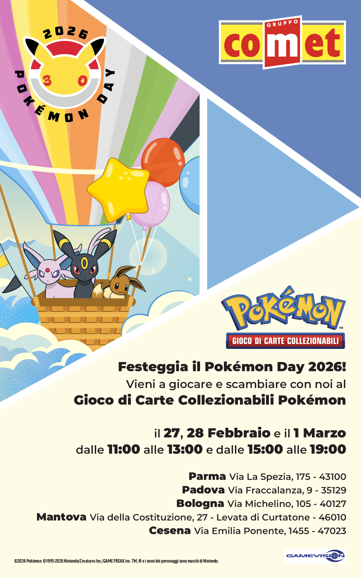 Festeggia con noi il Pokemon Day 2026: scambia, gioca e divertiti nei negozi Comet!