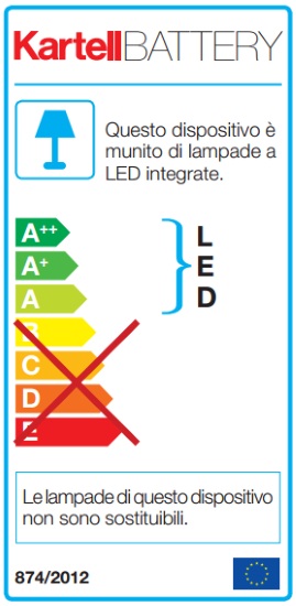 La grande innovazione è data dal fatto che è 100% ricaricabile tramite una semplice spina elettrica e può vivere in autonomia fino a 8 ore. Questo le consente di essere spostata con grande facilità: ideale dunque per il contract, l’utilizzo in caffè o ristoranti all’aperto. Battery presenta un cappello realizzato in diverse tonalità di colore dalla superficie sfaccettata che offre incantevoli giochi di luce.